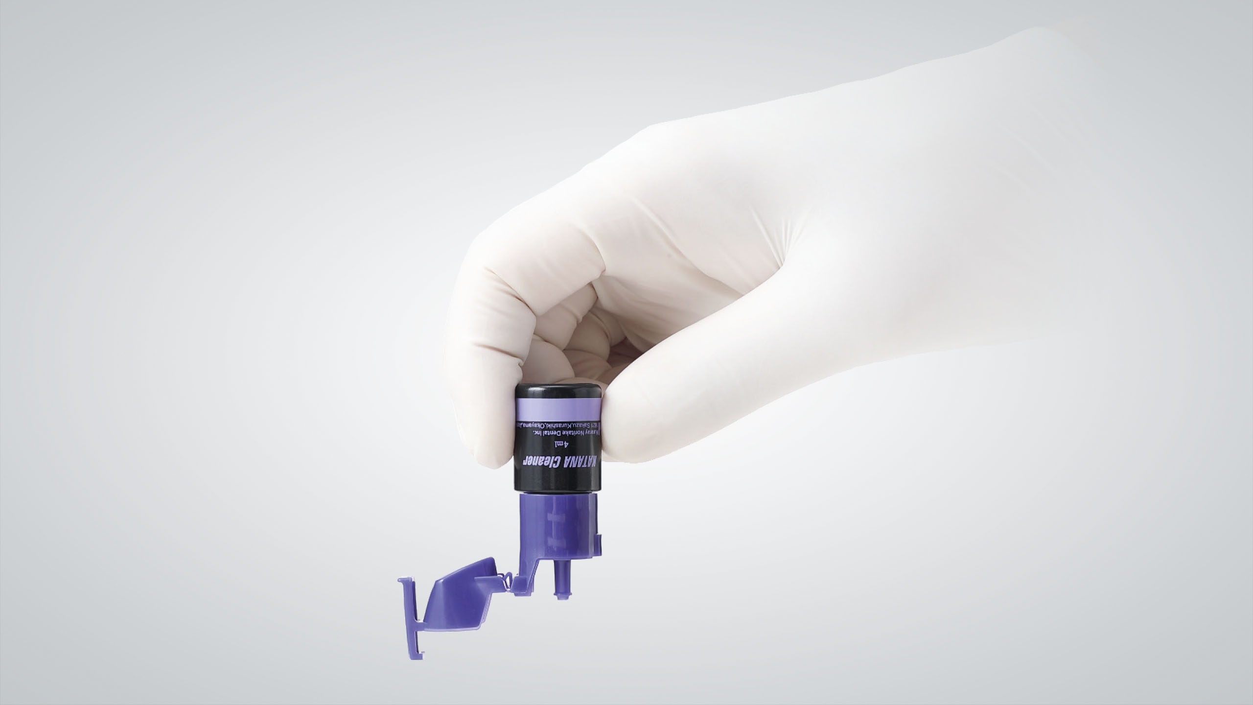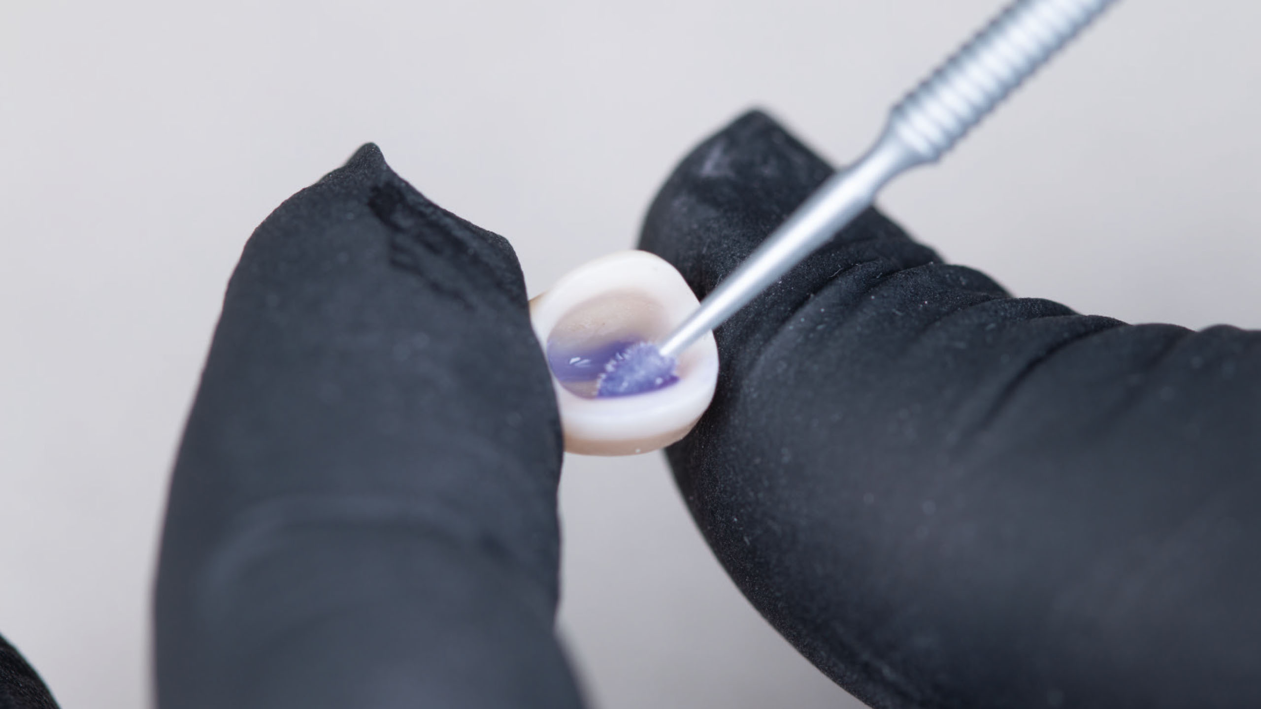 06 - Ztm. Simon Stroh: Vor dem Verkleben eines Hybrid-Abutments mit der Titanbasis wird die Oberfläche mit Katana Cleaner gereinigt. So wird eine saubere Grundlage für das langzeitstabile Verkleben geschaffen.