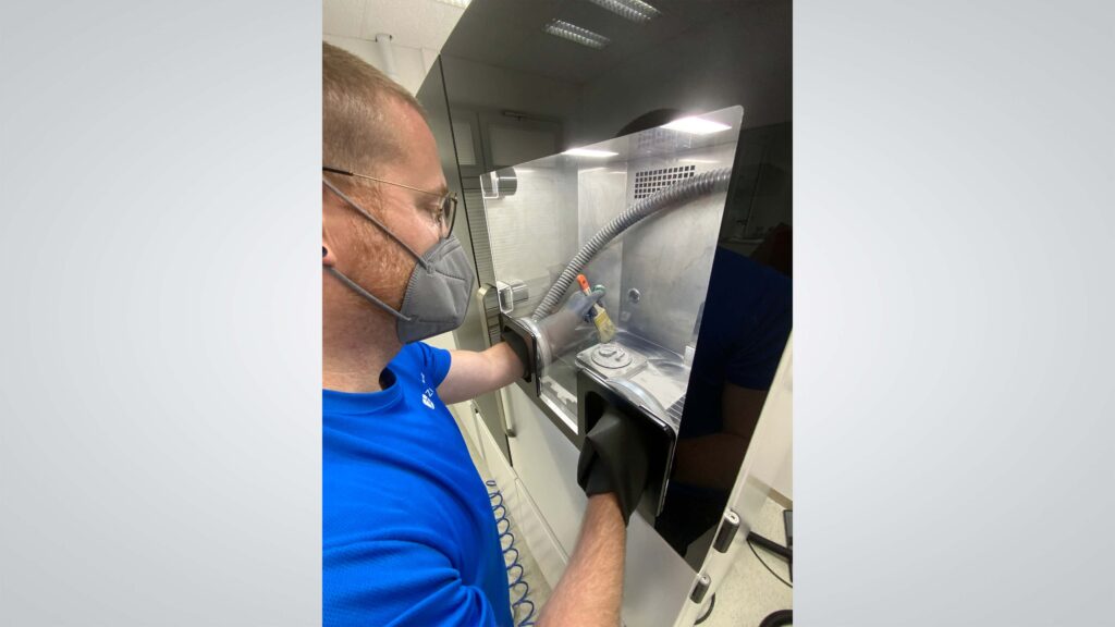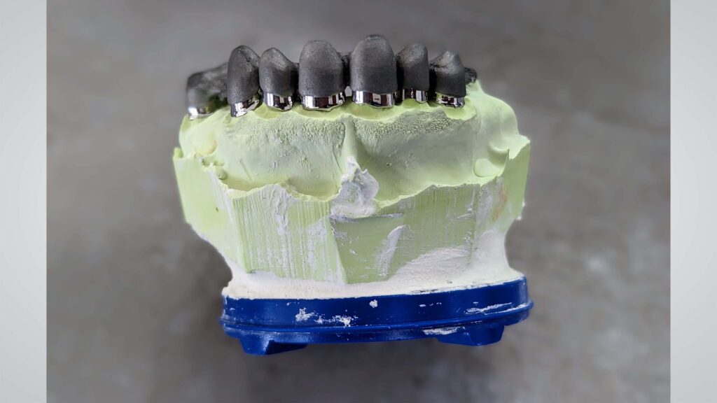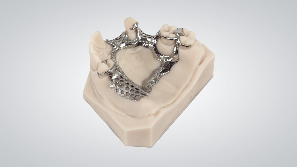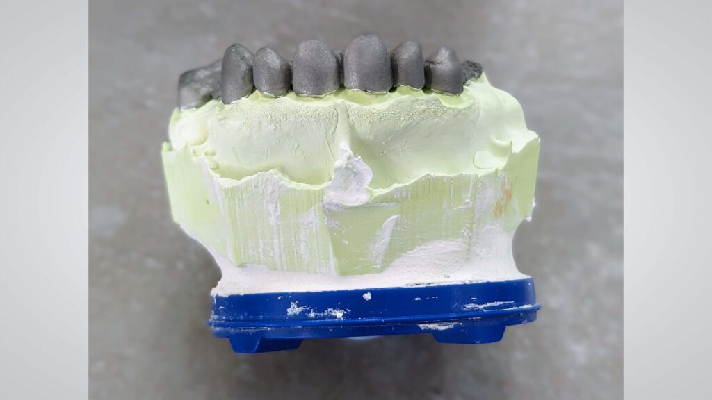 Jetzt kommt ja bei dem Lasermelting häufig das Thema Gesundheit zur Sprache. Wie reflektieren Sie das Thema nach einem Jahr intensiver Anwendung in Ihrem Labor? Kurz: Da es ein Druck-System mit dicht verschlossenen Pulverkartuschen ist, kommen die Mitarbeitenden mit Staub nicht in Kontakt und es gibt keine gesundheitlichen Einschränkungen. Klar haben wir uns darüber auch Gedanken gemacht, zumal der Gesundheitsaspekt eine entscheidende Rolle in einem Dentallabor einnimmt. Wir nutzen lediglich Maske und Handschuhe erst an der Anlage, aber nicht im Raum, da es hier nicht zur Staubentwicklung kommt. Das Tragen einer Ganzkörperschutzausrüstung ist bei diesem System nicht nötig. Das erleichtert den Arbeitsalltag und reduziert die Prozesszeiten.