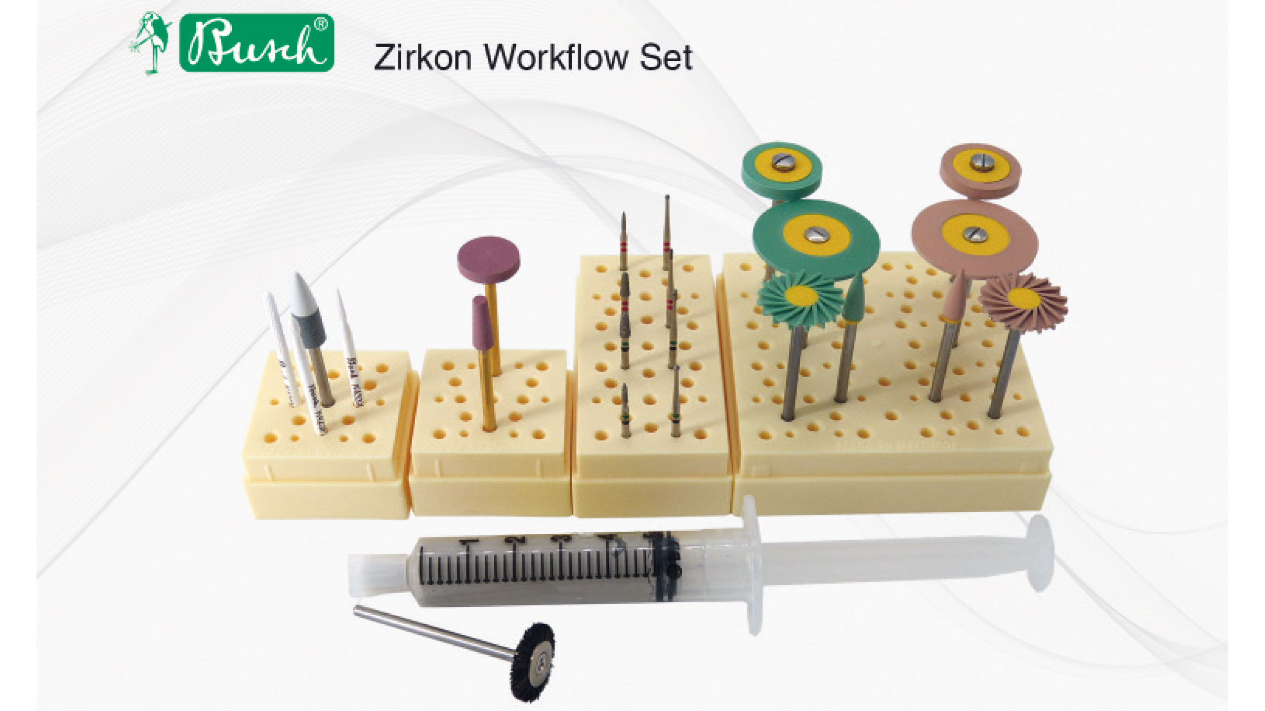 Das Zirkon Workflow Set aus dem Hause Busch: von der Weißlingsbearbeitung bis zur Hochglanzpolitur, alles in einem Set.