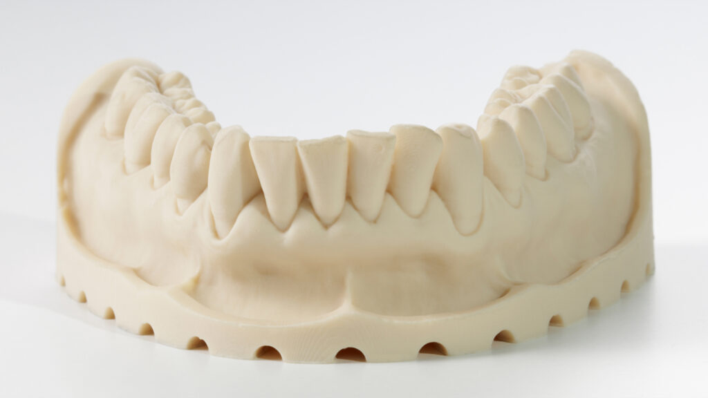 NYTE3D Model Ivory HC (High Contrast) – Hier hat NYTE3D die Transluzenz im Material stark reduziert, um die Oberflächenmorphologie bestmöglich kenntlich zu machen. Ergebnis ist eine gipsähnliche Optik, was beispielsweise die „Ästheten“ in Keramikabteilungen freuen wird; denn dies erleichtert den Umstieg vom Gipsmodell zum gedruckten Modell.