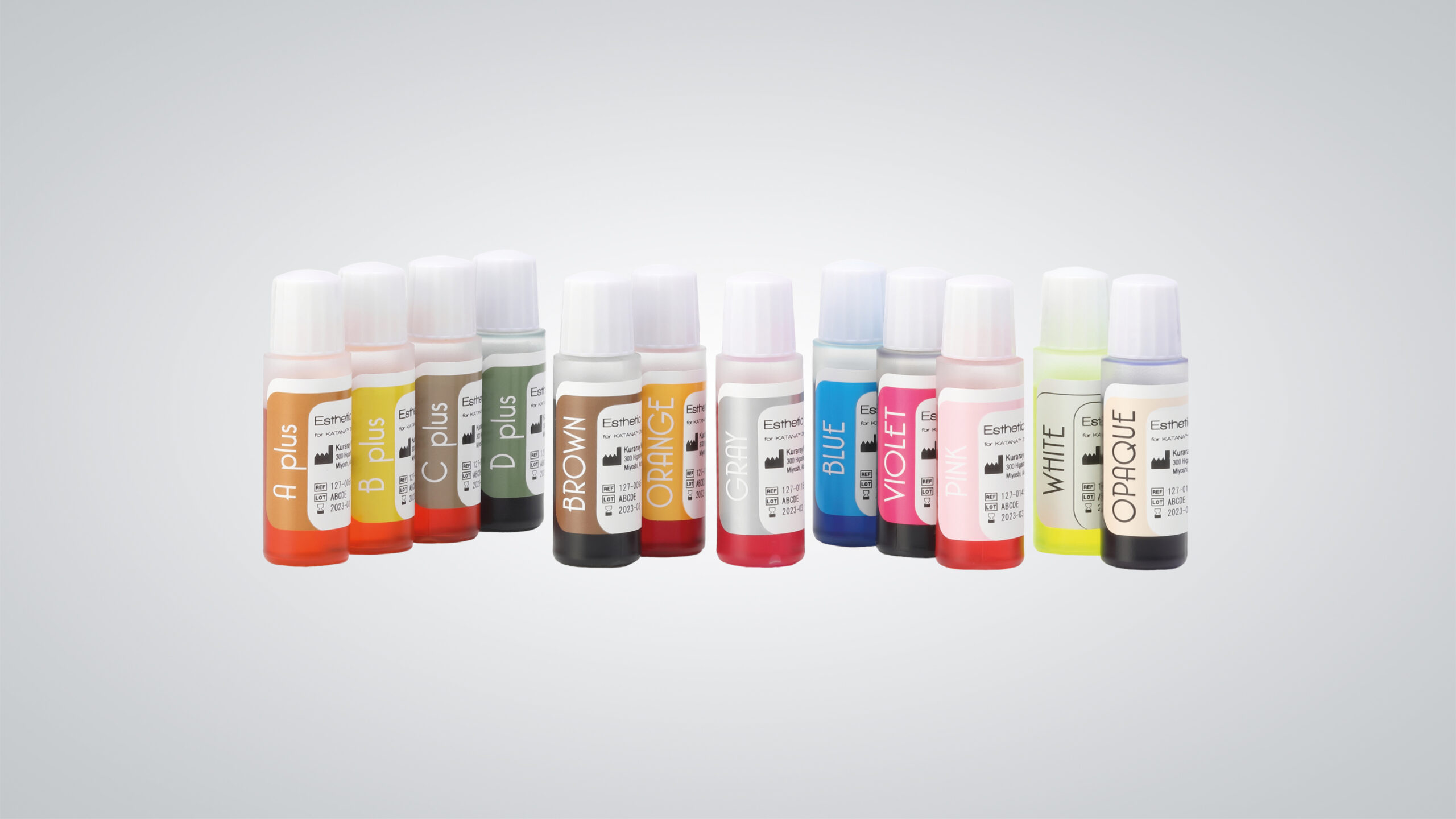01 - Die Effektflüssigkeiten Esthetic Colorant hauchen der Zirkonoxid-Restauration vor dem Sintern Leben ein. Im Gegensatz zu klassischen Färbelösungen ist Esthetic Colorant speziell für ästhetische Zirkonoxide (Katana Zirconia Multi-Layered) konzipiert und verleiht der Restauration den echten True-Colours-Effekt.