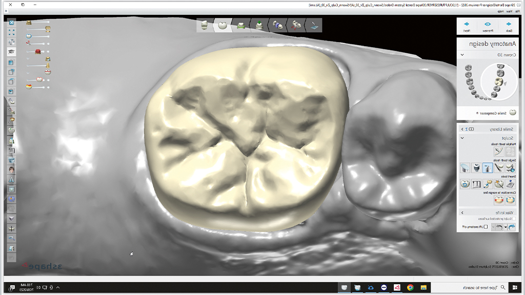 Der Erfolg jeder digital gefertigten Restauration beginnt mit einem CAD-Design, bei dem Festigkeit, Ästhetik und Kontur für die Funktion und Reinigungsfähigkeit der Restauration berücksichtigt werden. Nach Abschluss der Konstruktion wird das Restaurationsdesign in die Druckersoftware geladen. Von dort werden die fertige Datendatei an den 3D-Drucker gesendet und das geeignete Druckharz ausgewählt. Nach dem Druck wird die Restauration mit 96%igem Alkohol und einer weichen Zahnbürste gereinigt, getrocknet und mit geringem Druck abgestrahlt. Die endgültige Aushärtung erfolgt nach der Konturierung und dem Auftragen der Malfarben und der Glasur. Anschließend werden die Restaurationen auf Passgenauigkeit und Funktion überprüft und für die endgültige Ästhetik manuell mit Diamantfräsern konturiert.