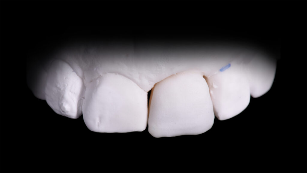 - Grundsätzlich ist es wichtig, zusätzlich zu den lichtoptischen Eigenschaften auf die Imitation einer natürlichen Form und Textur zu achten. Denn nur wenn alle anatomischen Merkmale des Nachbarzahns detailgetreu übernommen werden, wird eine harmonische Integration einer einzelnen Frontzahnkrone gelingen. Das Wissen um morphologische Aspekte und die Fähigkeit, diese mit keramischen Massen nachzubilden, ist eine der wichtigsten Basics für die zahntechnische Arbeit.