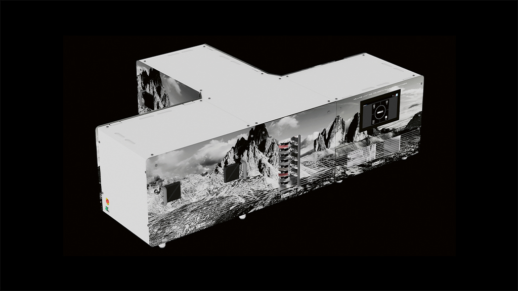 Das Fräsgerät M6 Teleskoper Blank Changer (Abb. 3) bietet maximale Flexibilität durch vielseitige Konfigurationsmöglichkeiten. Die Konfiguration M6 Teleskoper Blank Changer Triple war das Highlight von Zirkonzahn auf der diesjährigen IDS. Bis zu drei M6-Fräsgeräte können an ein großes Blankmagazin angeschlossen werden, das Platz für die Aufnahme und Lagerung von bis zu 80 Materialblanks bietet. So lassen sich alle Blanks zentral verwalten und verschiedene Materialien parallel bearbeiten – ein erheblicher Vorteil für die Beschleunigung und Optimierung des Workflows. Diese Kombination aus hoher Kapazität und Präzision macht das Fräsgerät M6 Teleskoper Blank Changer Triple zu einem unverzichtbaren Werkzeug für größere Labors.