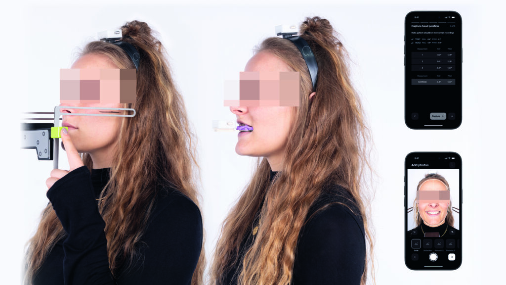 Zirkonzahn präsentiert mit dem Head Tracker eine innovative Lösung zur präzisen und individuellen Bestimmung der Oberkieferposition (Abb. 5). Im Gegensatz zur früheren analogen Methode mit dem PlaneFinder, bei der die Daten nachträglich digitalisiert wurden, kann der gesamte Prozess nun direkt aus Intraoralscans heraus gestartet und vollständig digital weitergeführt werden. Der Head Tracker erfasst die natürliche Kopfposition (NHP) digital, kontaktlos und ohne exogene Einflüsse. Mithilfe zwei moderner Sensoren und der Zirkonzahn.App werden wichtige Daten wie Oberkieferposition, Ala-Tragus-Ebenen und 2D-Bilder der Gesichtsphysiognomie des Patienten gesammelt. Diese werden in der App individuell ausgerichtet und dienen als Grundlage für den Zahntechniker, welcher die Daten zur Weiterverarbeitung in die Software Zirkonzahn.Modifier transferiert.