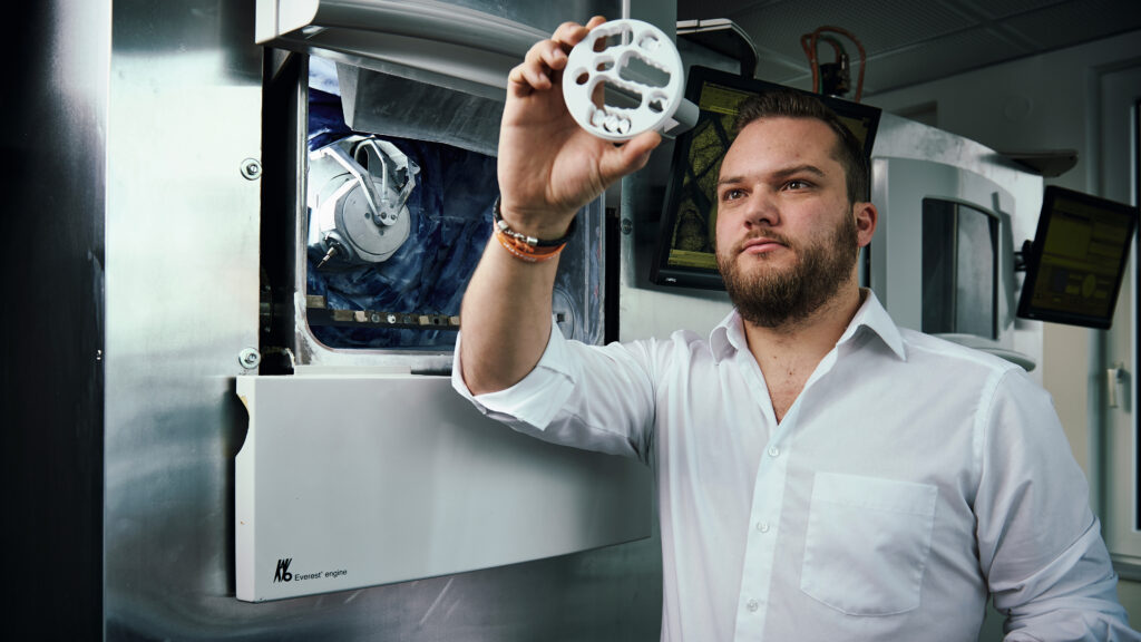 Üblicherweise ist die zerspanende Bearbeitung von Zirkonoxid, Cobalt-Chrom, Titan, PMMA und anderen branchentypischen Werkstoffen in Dentallabors von Komplettlösungen geprägt. Systemanbieter liefern zu den Maschinen meist gleich vielseitig verwendbare Universalwerkzeuge mit. Jedoch bedeutet die übliche Praxis nicht, dass in der Dentalbranche keine Optimierung der Zerspanungsprozesse möglich wäre. Ein wissenschaftlicher Vergleichstest von Dentaltechnik-Werkzeugen für die Zirkonoxid-Bearbeitung an der Hochschule Augsburg ergab im Jahr 2020, dass die Auswahl der Fräswerkzeuge einen signifikanten Einfluss auf die Qualität der Ergebnisse und die Effizienz der Bearbeitung hat. Das speziell für dieses Material optimierte Werkzeug von Hufschmied Zerspanungssysteme ging als Sieger aus dem Benchmarks hervor. Die Tatsache, dass das auf materialspezifische Werkzeuge spezialisierte Unternehmen mit seinen Produkten und seinem Beratungsansatz bei goodBionics auf offene Ohren stieß, ist kein Zufall. „Ich gebe zu, wir haben ein gewisses Maschinenbauinteresse. Unseren alten KaVo-Everest-Fräsapparat haben wir zum Beispiel weitreichend modifiziert und mit neuen Antrieben versehen“, verrät Benjamin Schick, Geschäftsführer von goodBionics Biotechnologie und ergänzt: „Seit wir uns ein DMG-Ultrasonic-Fräszentrum geleistet haben, wollen wir erst recht die technischen Möglichkeiten ausreizen.“