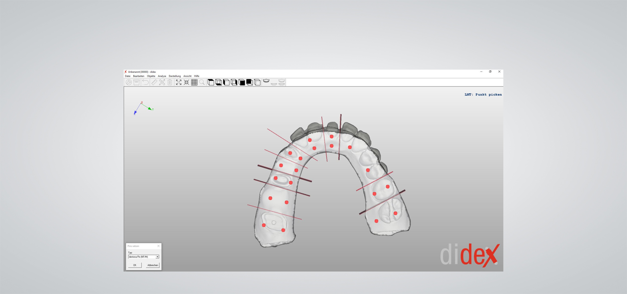 Das Programm didex ist die erste Software zur Vorbereitung eines digitalen Kiefermodell-Scans für den 3D-Druck eines Pindex-Modells. Didex verbindet erstmals und lange ersehnt die effiziente 3D-Drucktechnik mit den Anforderungen an ein zahntechnisches Präzisionsmodell. Haptik und Optik entsprechen dem gewohnten Gipsmodell. Der gepinte und mit Gips gesockelte Zahnkranz liefert Zahntechnikerinnen und Zahntechnikern höchste Genauigkeit und Ergebnistransparenz. Friktion und Sitz der Zahnstümpfe erfüllen erstmals die Ansprüche eines Meisterlabors.