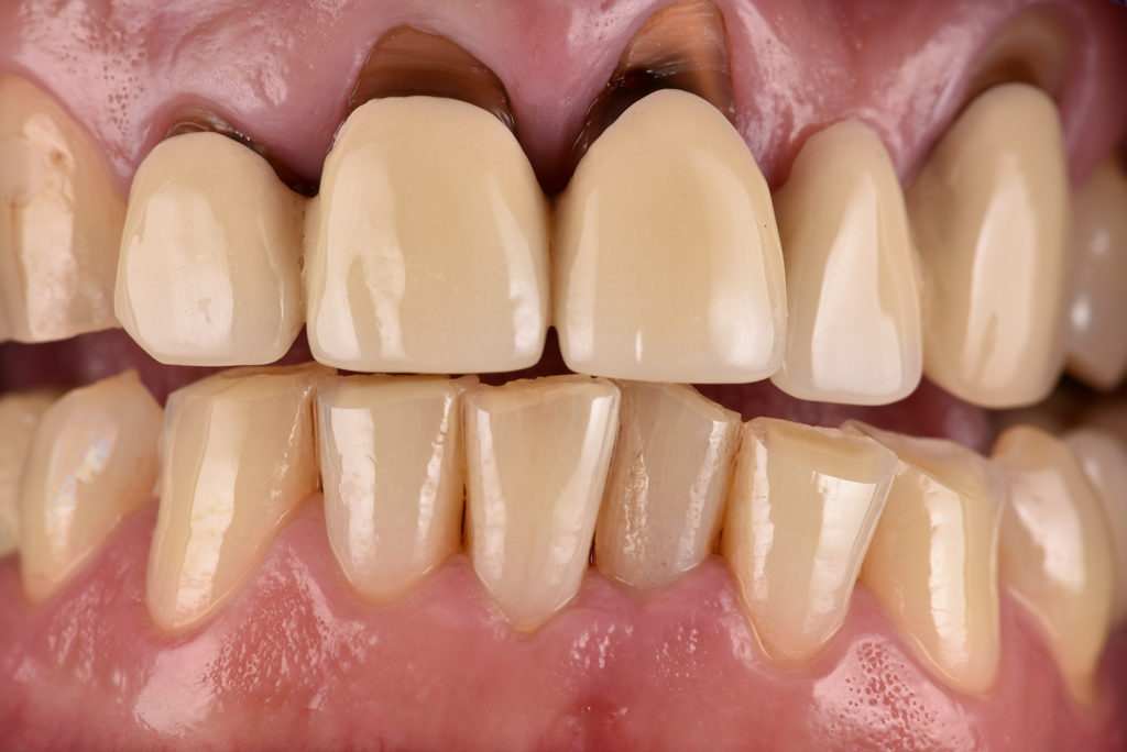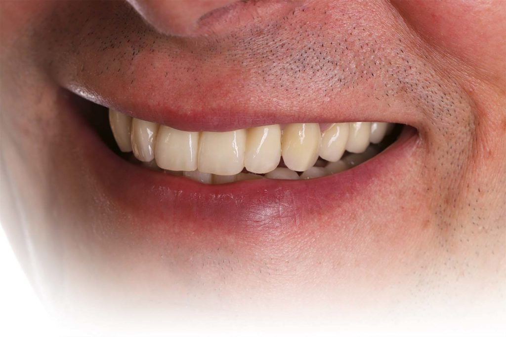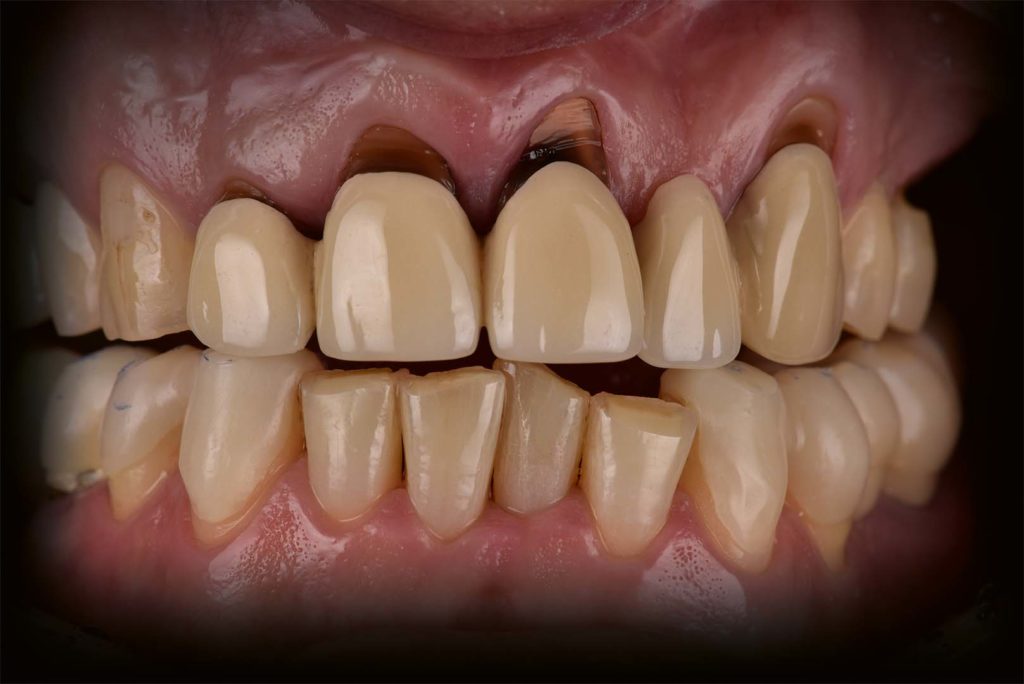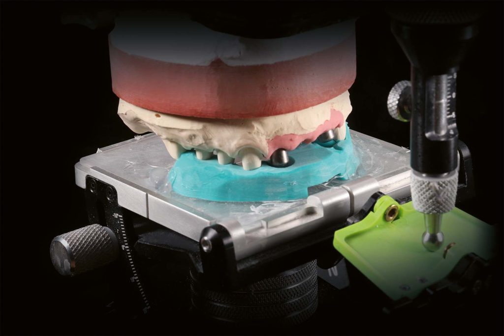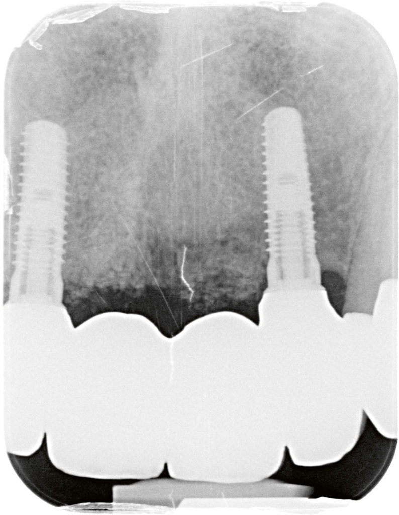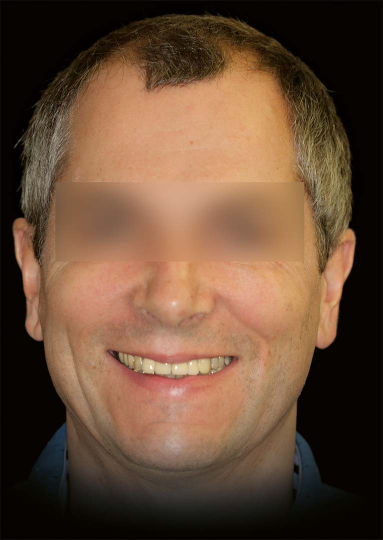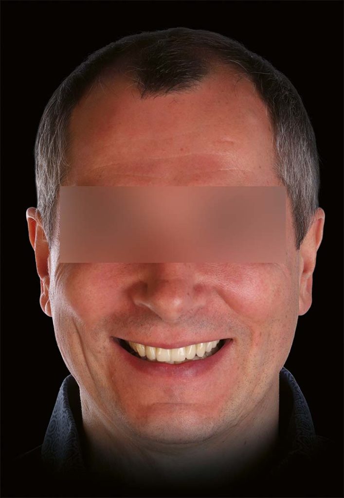 In komplexen Fällen wie dem vorliegenden Patientenfall reichen einfache Modelle nicht aus, da ist eine umfassende Analyse aller beteiligten Strukturen notwendig und eine genaue Behandlungsplanung erforderlich. Um ästhetisch ein sehr gutes Ergebnis zu erzielen, ist es wichtig, im Vorfeld alle Wünsche und Vorstellungen mit dem Patienten abzustimmen. Dazu sind die genannten Analyseunterlagen unabdingbar. Die hier gezeigte implantologische Sofortversorgung im Frontzahnbereich ist für Einzelzähne inzwischen etabliert, Brückenkonstruktionen sind komplexer und entsprechend schwieriger. Der entscheidende Vorbehandlungsschritt war in diesem Fall die provisorische Bisshebung durch die Table Tops, die den Weg für das kontaktfreie, festsitzende Sofortprovisorium 12 bis 22 ebneten. Der Patient musste anschließend für circa sechs Wochen auf ein Abbeißen mit den Frontzähnen verzichten, danach konnte er damit beginnen und sich langsam steigern.