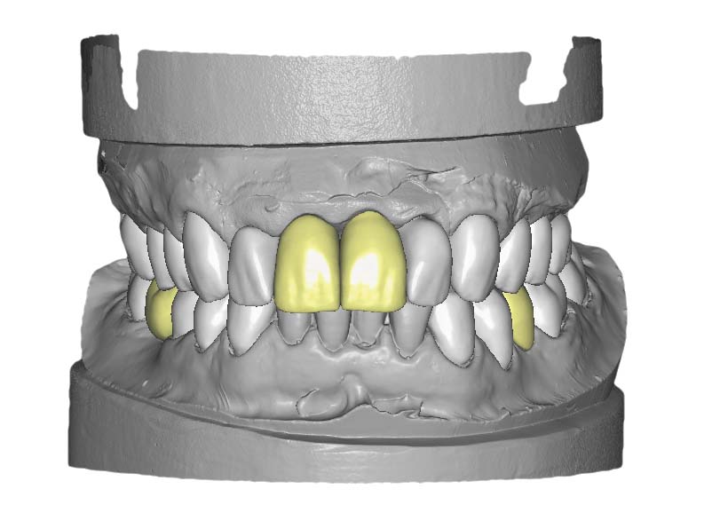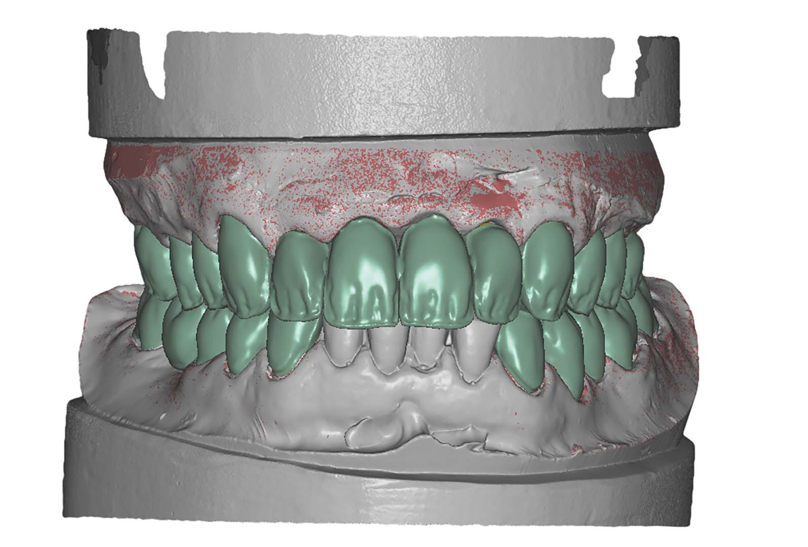 3D-Gesichtsscan, Abrasionen, Aufbissschiene, Bisshöhenverlust, Draniomandibuläre Dysfunktion, Implantate, Langzeitprovisorium, Registrierung, Störkontakte, Table Tops, Veneers, Virtueller Artikulator, Wax-up, Zirkonoxidkronen