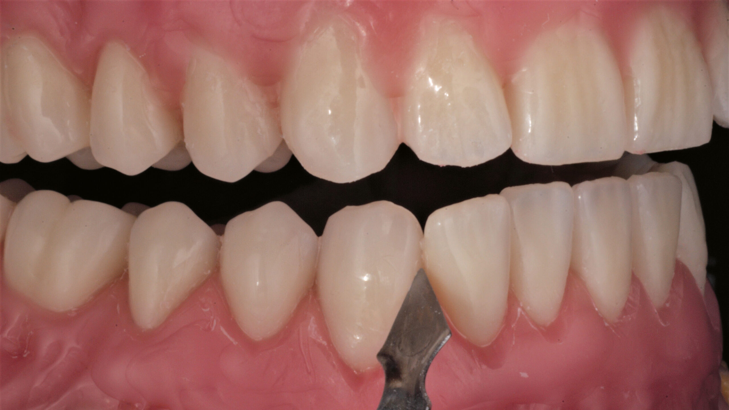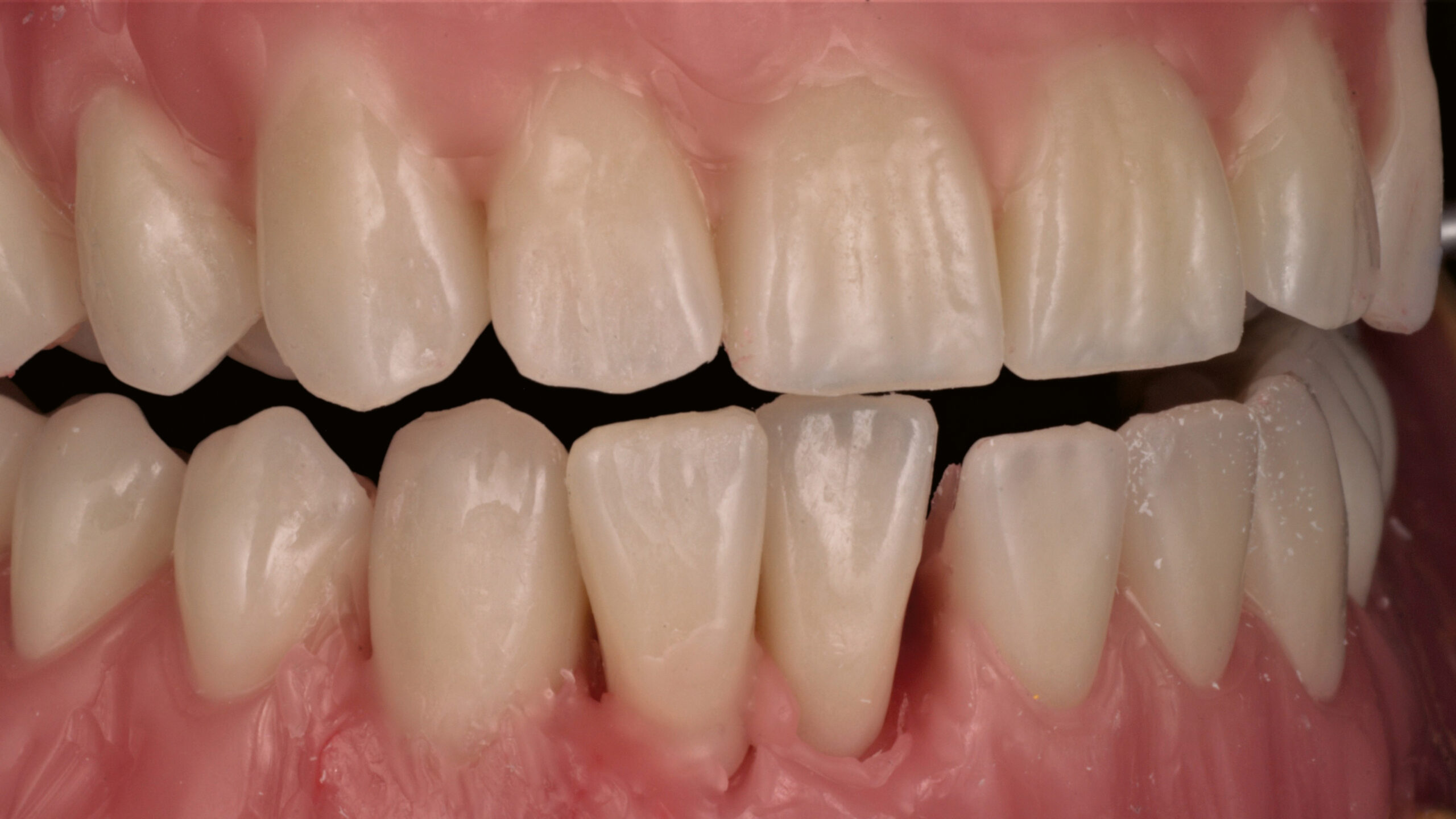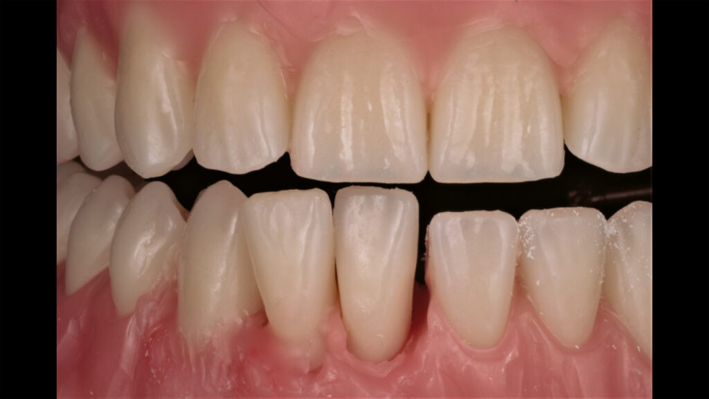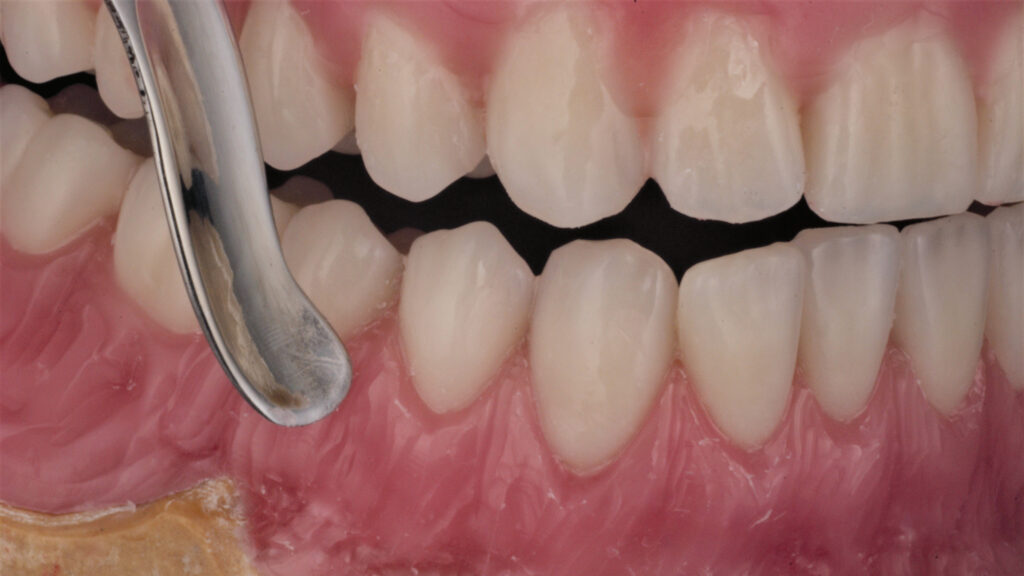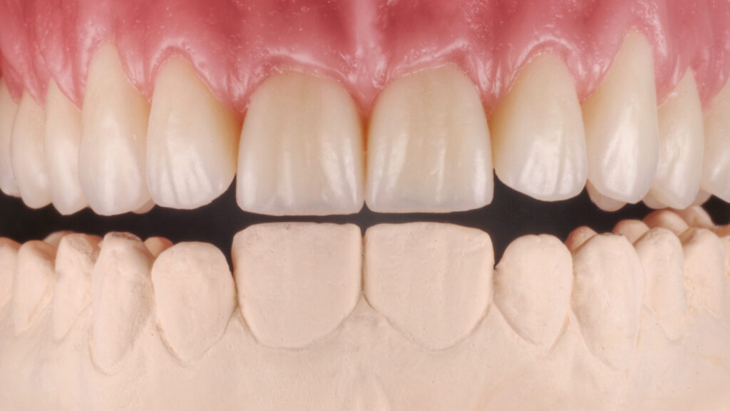 Wichtig: Die Funktion der Seitenzähne sollte möglichst erhalten bleiben. Sollte dies auf Anhieb nicht möglich sein, sollte der Unterkiefer im nächsten Schritt entsprechend angepasst werden.