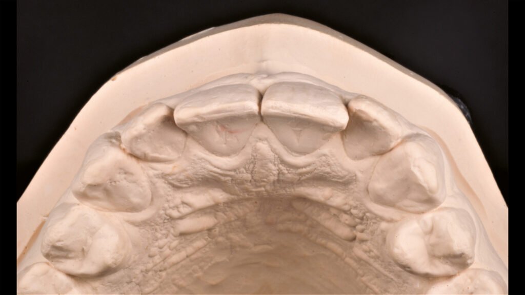 Zur Inspiration für die individuelle Gestaltung von Frontzahnsituationen nutze ich gerne meinen Patientenfotofundus. Hilfreich sind auch ältere Fotos (Abb. 3 bis 5) und Situationsmodelle (Abb. 6 und 7) des Patienten, wie sie für diesen beispielhaften Fall herangezogen wurden.