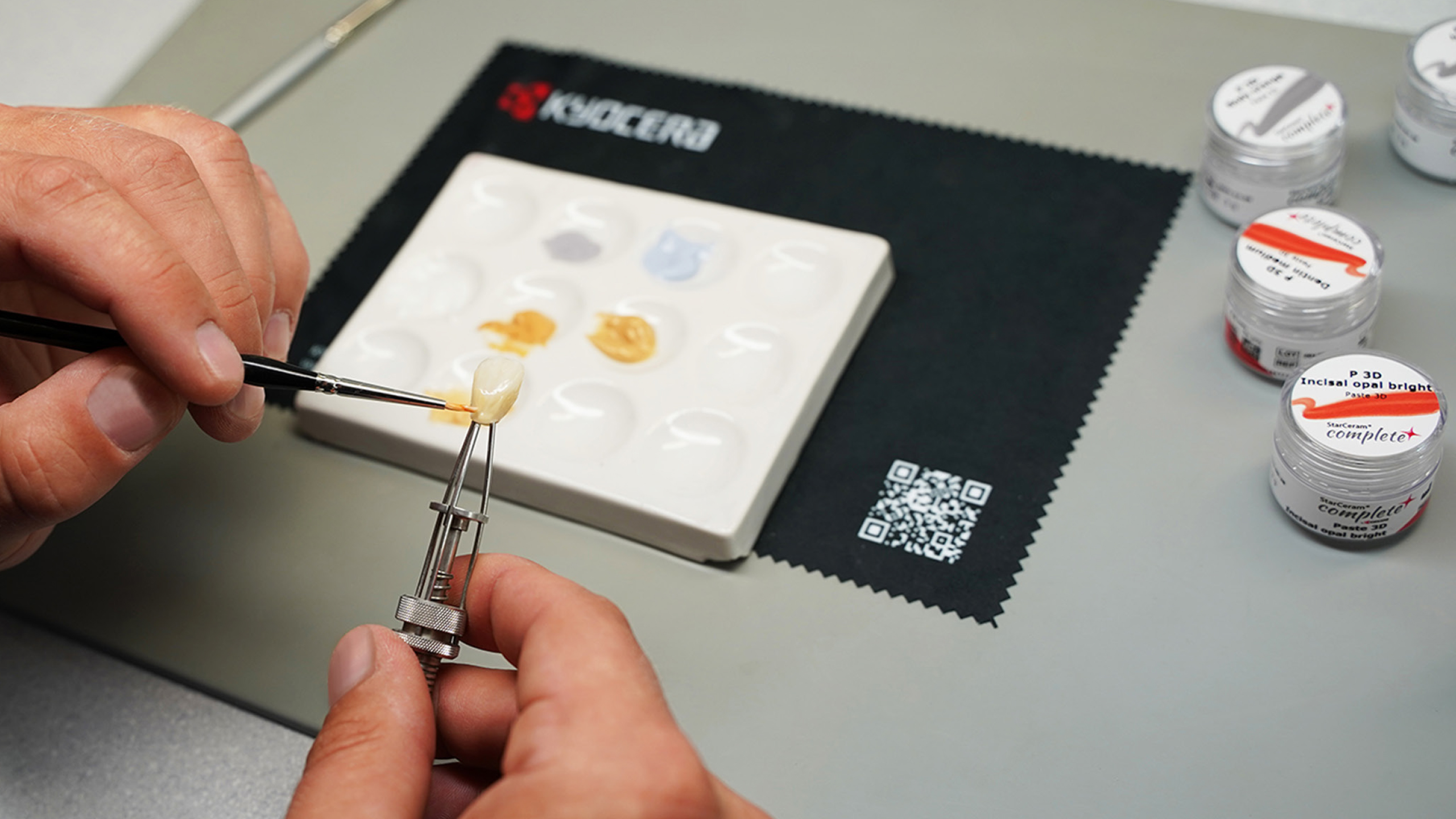 Kyocera Fineceramics Precision bringt in Zusammenarbeit mit Dentaurum spezielle 2D- und 3D-Pasten für höchste ­ästhetische Ansprüche bei der Finalisierung von vollkeramischen monolithischen Restaurationen auf den Markt. StarCeram complete ermöglicht dabei das individuelle Gestalten sowie das schnelle und einfache Glasieren in nur einem Brand. Die farblich abgestimmten Pasten sind mit allen Star­Ceram Blanks von Z-Al Med HD über Z-Nature Ultra bis hin zu Z-Smile und allen polychromatischen Ronden kompatibel.