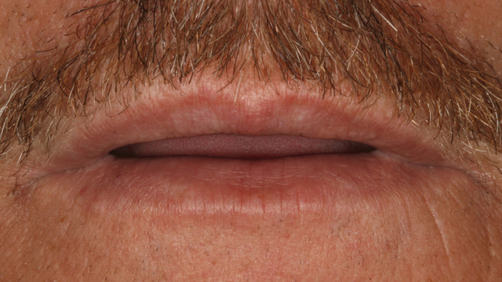 Bevor wir mit dem Wax-up starten konnten, benötigten wir noch Porträtfotos des Patienten, die ihn mit unterschiedlichen Lippenpositionen – Ruheschwebelage, leichtes Lächeln, maximales Lachen – zeigten (Abb. 13 und 14). Die Anfertigung dieser Situationsfotos findet bei uns im Labor statt und bietet eine gute Gelegenheit, sich gegenseitig kennenzulernen. Eine gute Möglichkeit, um gemeinsam mit dem Patienten über seine Vorstellungen und Wünsche zu sprechen. Das sorgt für Vertrauen und Motivation auf beiden Seiten, und wir bekommen ein Gefühl für den Charakter des Patienten, was wiederum wichtige Erkenntnisse für die herzustellenden Frontzähne liefert.