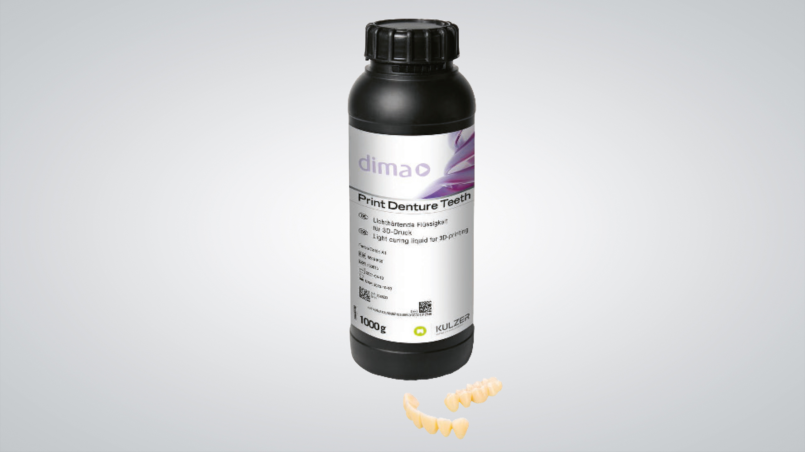 dima Print Digital Denture hilft Ihnen, Duplikate (z.B. für Reisen oder Notfälle) in einem schnellen und einfachen Prozess herzustellen und so einen neuen Markt für Ersatzprothesen zu bedienen. / Wellenlänge 385nm und 405nm