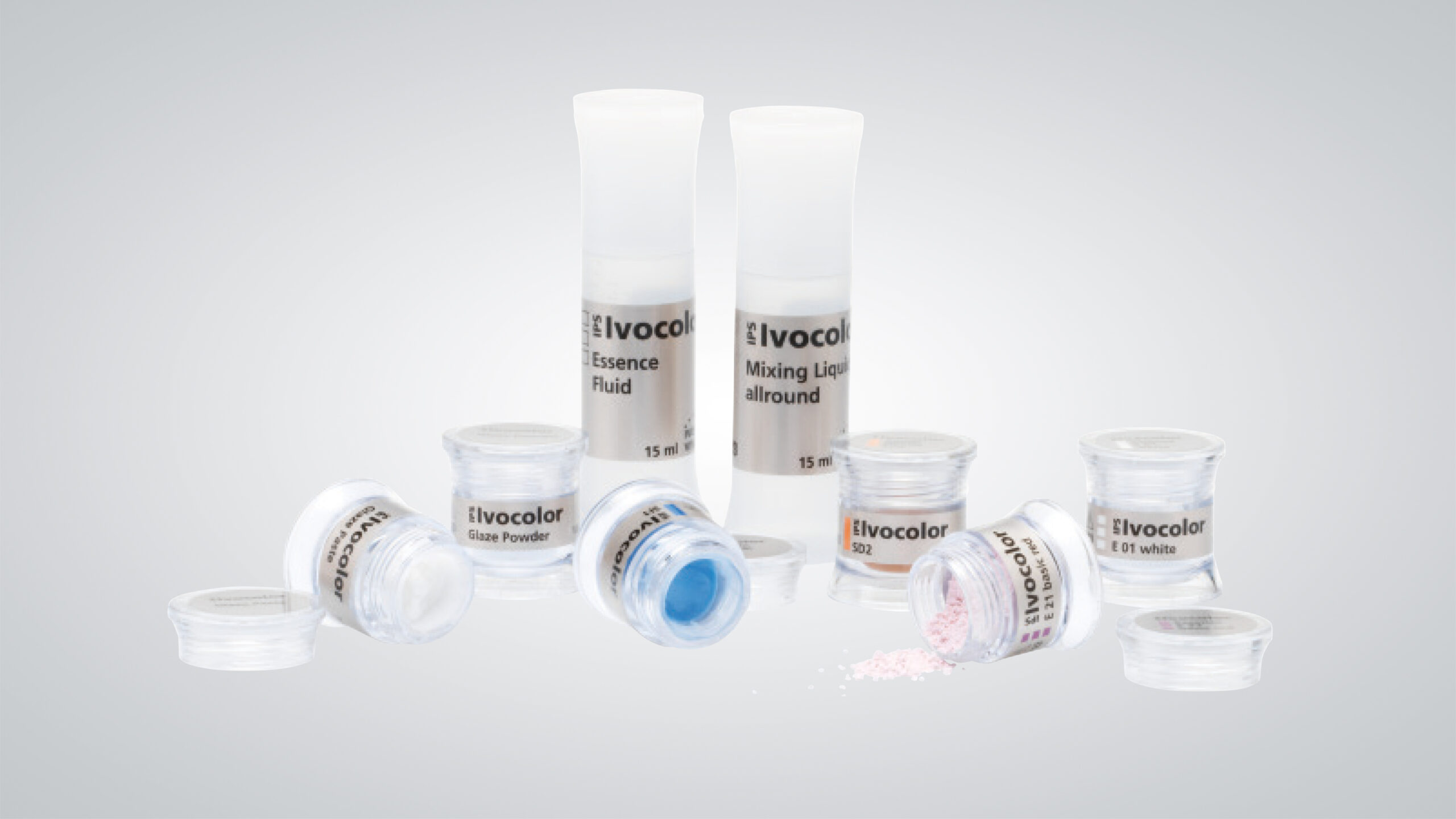 IPS Ivocolor sind universelle Malfarben und Glasuren für die individuelle Bemalung und Glasur von keramischen Werkstoffen. / Die Produkte sind auf alle IPS Schicht-, Press- und CAD-Keramiken (Ivoclar) abgestimmt. Sie sind kompatibel mit Keramiken im WAK-Bereich von 9.0 – 18.0 x 10–6/K (acc. ISO 6872:2015).