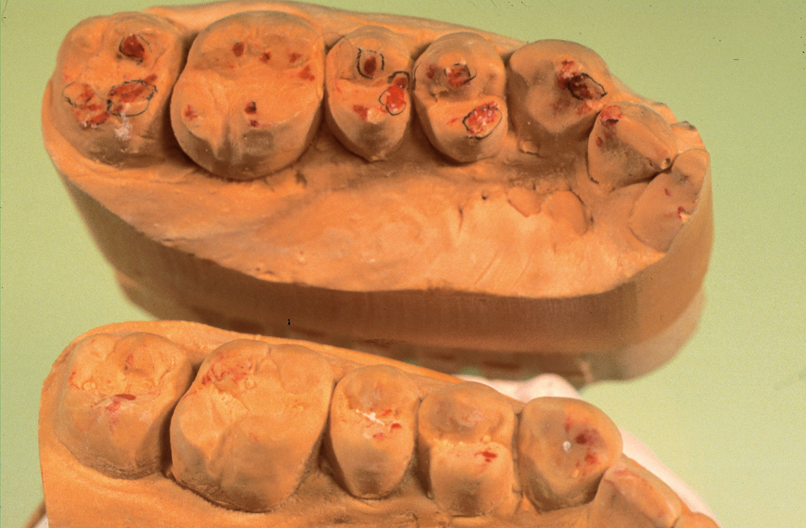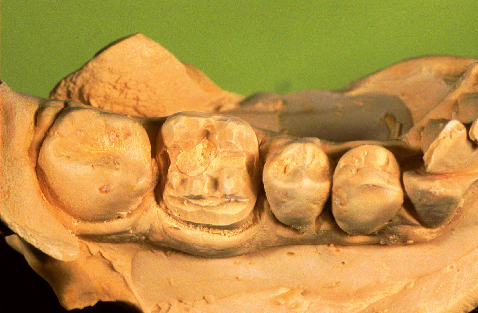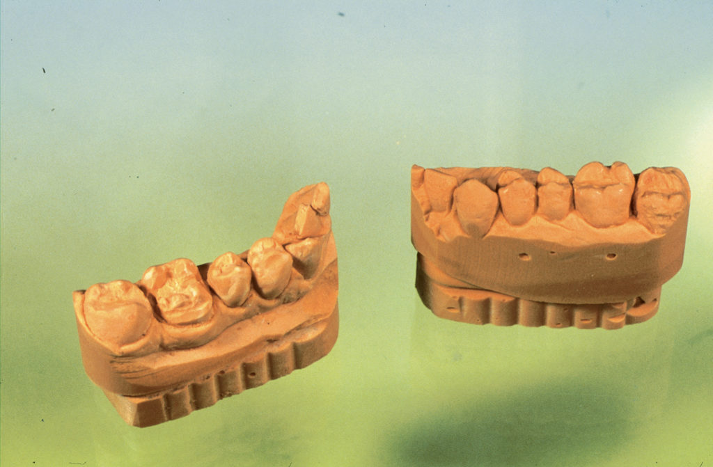 Seit Beginn meiner Selbständigkeit arbeite ich nach dem beschriebenen System. Dieser Beitrag wurde von mir vor 24 Jahren dokumentiert und verfasst, ruhte jedoch jahrelang in der Schublade, da ich der Meinung war, die Zeit sei nicht reif, für eine Veröffentlichung. Damals wie heute lautet mein Motto: „Gut sind alle, aber zu langsam“. Die meisten Aufwachskonzepte basieren auf theoretischen Überlegungen und einem rein mechanischen Denkmuster und werden auf eine zuvor als „ideal“ festgelegte Okklusion projiziert. Dass diese Konzepte mit der natürlichen, sich immer wieder ändernden Okklusion nicht übereinstimmen können, habe ich dargelegt. Nicht nur Einzelzähne kann man auf die von mir beschriebene Art versorgen, sondern auch ganze Inlay-Straßen, dreigliedrige Brücken und sogar ganze Quadranten. In den vergangenen Jahren wurden die Goldlegierungen weitestgehend durch diverse vollkeramische Materialien ersetzt, wobei die Arbeitsweise grundsätzliche jedoch unverändert blieb. Nur allzu oft beobachte ich, dass vielen Technikern das zahntechnische Grund- und Basiswissen fehlt – dies bildet jedoch die handwerkliche Basis unseres Berufs. Jedoch lässt sich auch mit Grund- und Basiswissen innerhalb einer nicht exakten Wissenschaft (die Zahntechnik ist eine empirische Disziplin) eine absolute mechanische Präzision nicht erreichen. Und eine stressfreie Restauration bedeutet nichts anderes, als dass der Patient sich damit wohl fühlt. Glaubt man einigen theoretischen Okklusions-/Funktionskonzepten, die zweifelsfrei, was die Theorie anbelangt, meist didaktisch gut aufgebaut sind, dann könnte man daraus schlussfolgern, dass nur einige „Auserwählte“ funktionstüchtigen Zahnersatz herstellen könnten und der Rest der Zahntechnikerwelt nur „prothetische Missbildungen“ produzieren. Den ersten Teil des Berichts habe ich 1997, also vor 24 Jahren, geschrieben. Die dokumentierte Arbeit wurde 1995 angefertigt und eingegliedert. Bis heute sind wir in unserem Labor dieser auf der Quadranten-Abformtechnik basierenden Zahntechnik treu geblieben – von der Einzelkrone bis hin zur (mittler­weile) viergliedrigen Brücke. Nur das Material und die Herstellungstechnik haben sich aus meiner Sicht zum Positiven verändert. Seit nun mehr als 15 Jahren arbeiten wir bei festsitzenden Arbeiten metallfrei, das heißt wir greifen auf Zirkonoxid zurück, monolithische Rekonstruktionen (oder auch Full-Contour-Zirconia), deren Oberflächen wir schließlich veredeln. Wir nennen das bei uns im Labor Surface Ennobling.