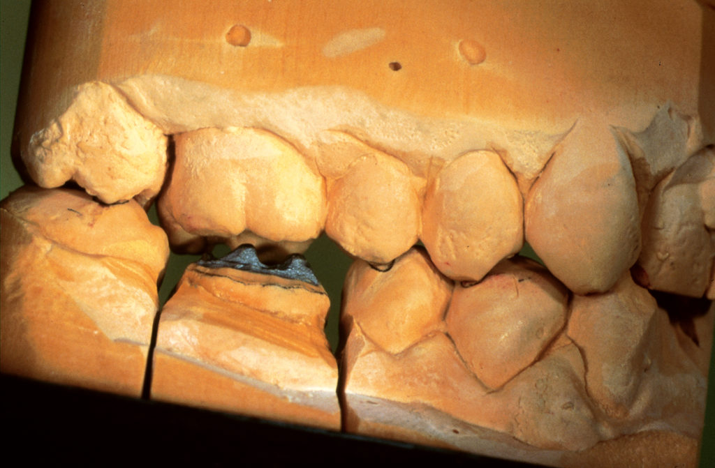 Bei der Herstellung des hier gezeigten Onlays kamen nur einfachste Mittel und Geräte zum Einsatz. Ganz bewusst haben wir auf „Hightech“ verzichtet, denn was letztendlich zählt, das ist nicht der Weg, sondern immer das Endergebnis. Eine okklusale Restauration ist immer ein Kompromiss. Die sogenannte „ideale Okklusion“, wenn es diese überhaupt gibt, kann man zwar anstreben, aber man wird diese nie erreichen. Okklusion ist nichts messbares, Okklusion ist etwas Individuelles. Schon zu Beginn der Artikulationsforschung haben Größen wie Gysi, Thielemann, Hanau, um nur einige zu nennen, erkannt, dass man ein „biomechanisches System“ nicht auf mechanischen, mathematisch genauen Kausimulatoren umsetzen kann. Dr. Carl Hiltebrandt, der Gründer der Vita Zahnfabrik, sagte in den 1930iger Jahren: „die Okklusion kann nicht aus der Betrachtung der Morphologie einzelner Zähne verstanden werden, sondern nur aus dem lebendigen Wirkungsgefüge (Kybernetik) des Gesamtorganismus heraus.“ Man spricht heute immer mehr von ganzheitlicher Medizin, nur die Aufwachskonzepte versteifen sich auf ein kleines Feld. Bei diesem Beitrag handelt es sich nicht um den „Stein der Weisen“, er erfüllt allein den Zweck eines Denkanstoßes und bildet lediglich unsere jahrelangen positiven Erfahrungen ab.