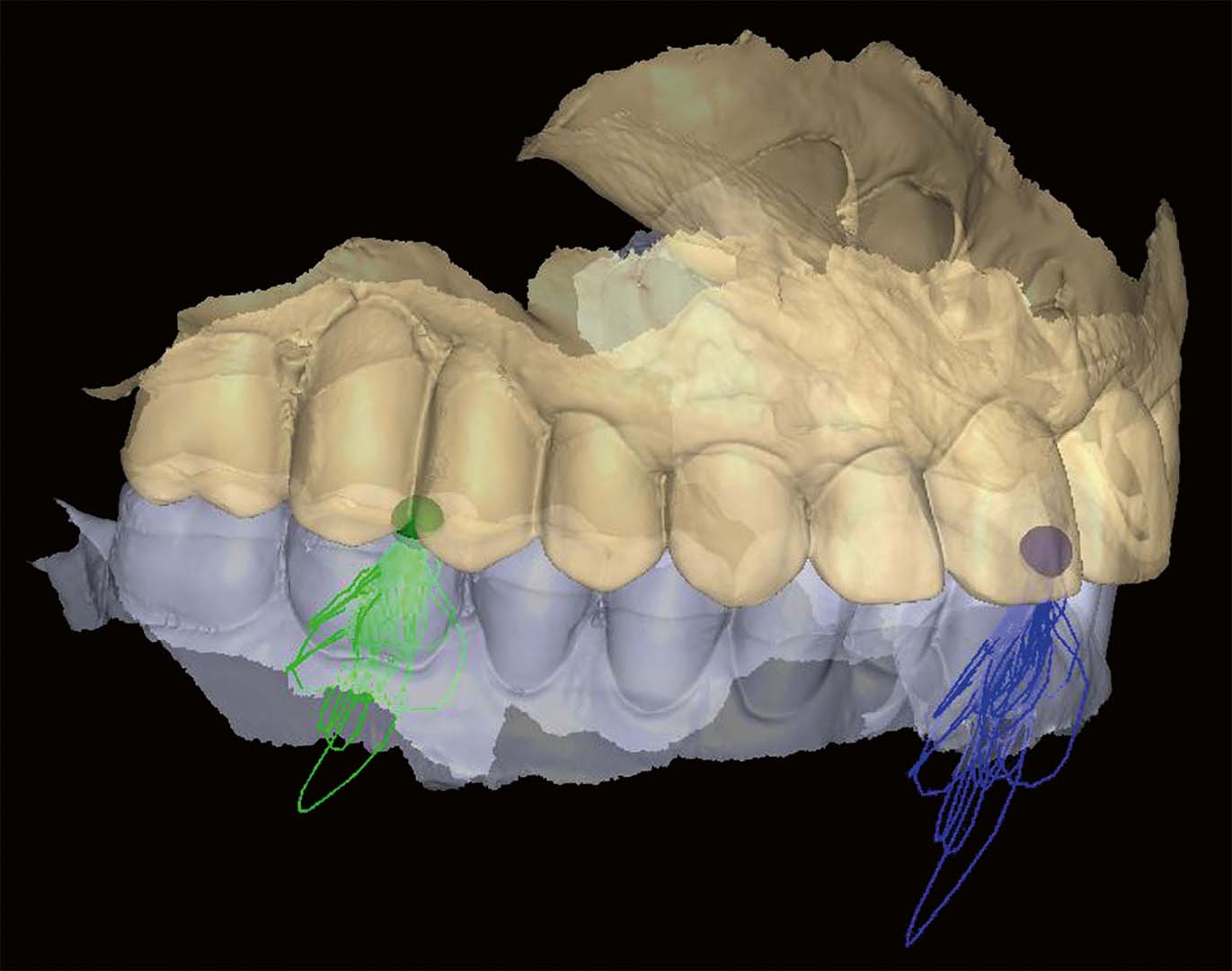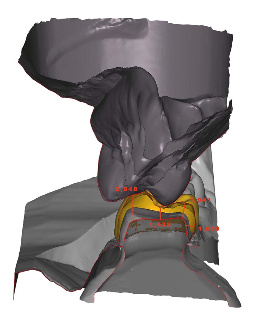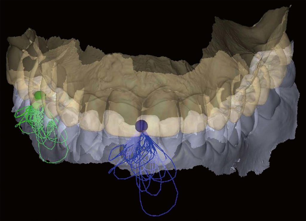 Die Aufzeichnungen der extremen Unterkiefer-Grenzbewegungen zur Einstellung von Artikulatoren, wie zum Beispiel Benett-Winkel, Kondylenbahnneigung und sonstige anatomische Referenzen und Ebenen, funktionieren nur als mechanisches Denkmodell. Dadurch ergeben sich mathematisch präzise Bahnen, die mit dem unbewusst schluckenden, sprechenden und kauenden Patienten wenig zu tun haben. Die Registrierung und Aufzeichnung der reellen, unbewussten patientenindividuellen Statik und Dynamik beim Schluck-, Sprech- und Kauprozess ist das, was wir für eine interferenzfreie, statische und dynamische Okklusion benötigen – und das auch unter Berücksichtigung der Eigenbeweglichkeit der Zähne.
