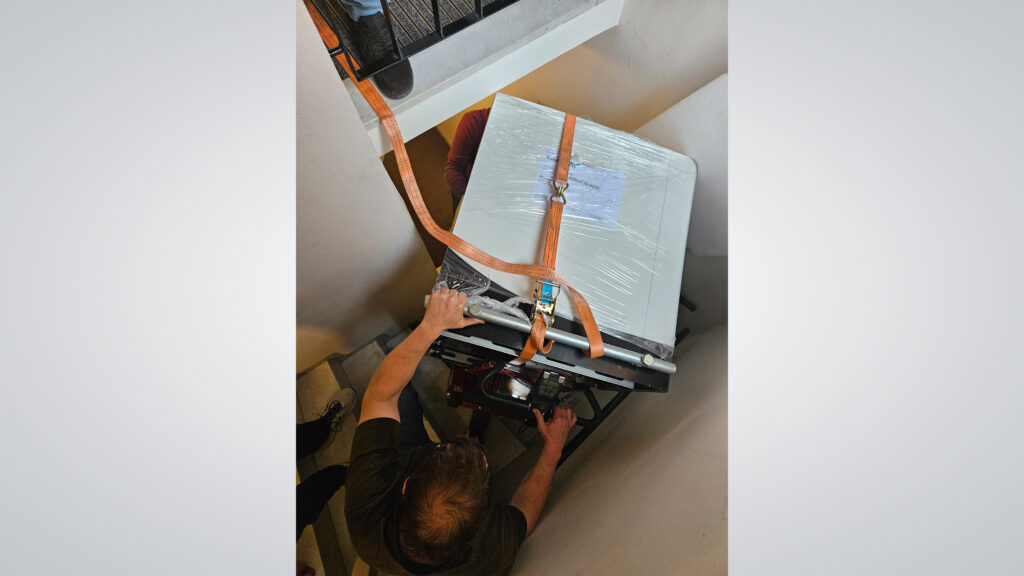 „Diese Lieferung war wirklich außergewöhnlich“, sagt er mit einem breiten Grinsen. „Das Treppenhaus war eng, die Maschine groß, und doch haben wir es gemeinsam geschafft. Es war ein wahrer Akt der Zusammenarbeit, bei dem Fingerspitzengefühl und Teamwork im Vordergrund standen.“