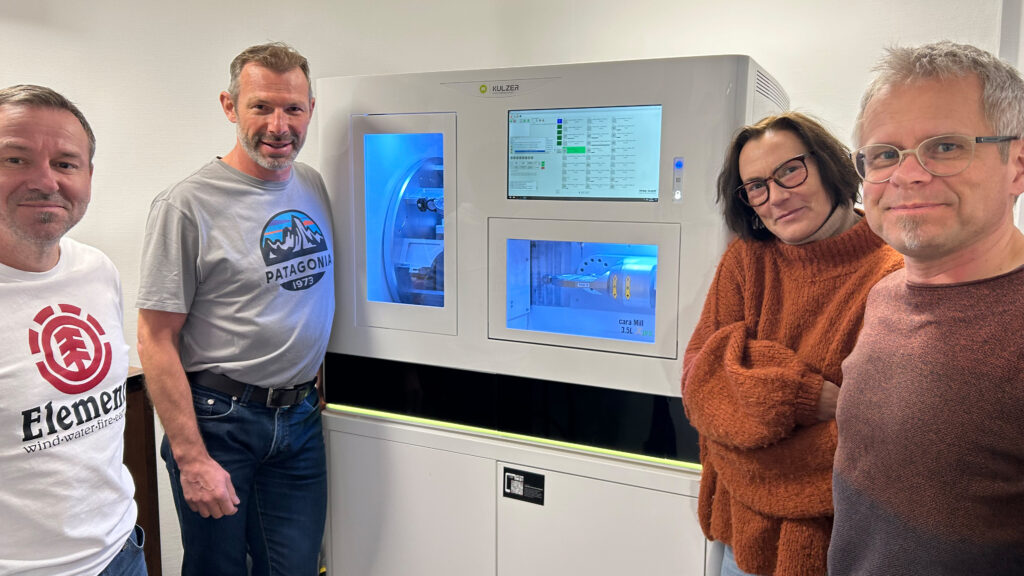 Die Begeisterung im Labor ist groß – die Maschine läuft bereits auf Hochtouren und die ersten Ergebnisse sind beeindruckend. „Durch die kompetente Einweisung des technischen Beraters von Kulzer sind wir bereits in der Lage, Teleskope zu fräsen“, verrät Roland Binder voller Stolz. „Und das mit nur einer Nachbesserung! Wir freuen uns alle sehr darauf, unsere Kunden mit hochwertigem Zahnersatz zu begeistern.“ Das dental team Ztm. Roland Binder – ein Labor, das nicht nur Zähne, sondern auch Herzen erobert.