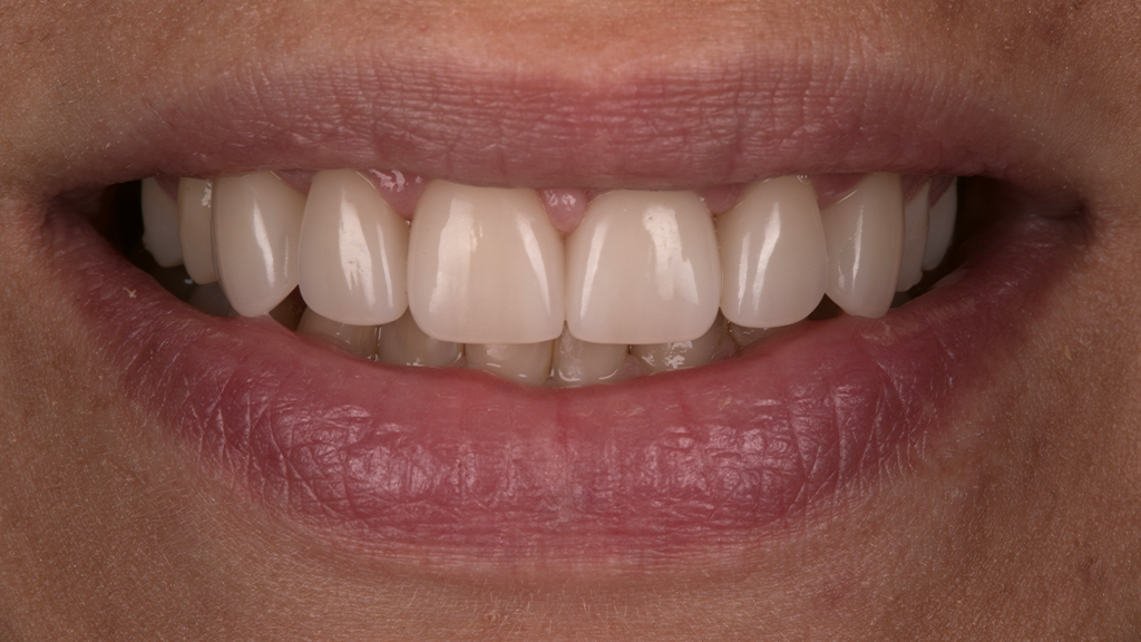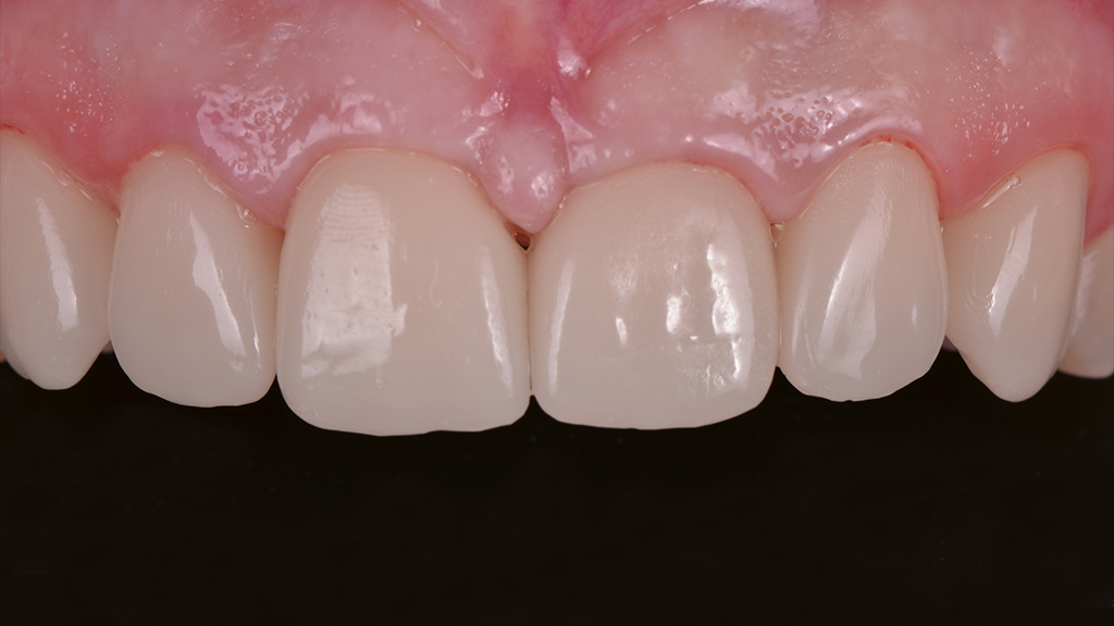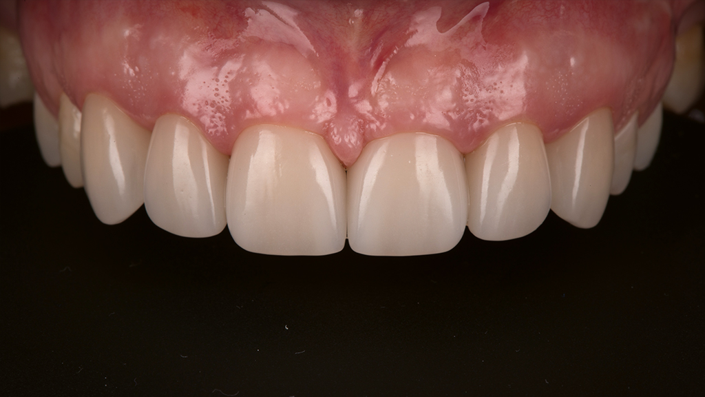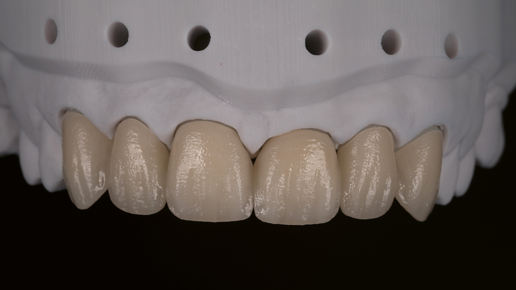 Wie so oft sind es die kleinen Details, die den Unterschied ausmachen. Natürlich hätten wir uns für eine rein monolithische Umsetzung entscheiden können, aber unser Weg führte in eine andere Richtung. Es galt, das Optimum herauszuholen, ohne zu viel Aufwand zu betreiben. Die Kombination aus Presstechnik und dünner Verblendung erwies sich als ideal. Die lichtoptischen Eigenschaften der Lithiumdisilikat-Keramik sowie die Umsetzung in der Presstechnik sind für uns in vielen Fällen ein Vorteil gegenüber anderen keramischen Werkstoffen. Der vorgestellte Fall zeigt, dass Innovation und Tradition sich nicht ausschließen, sondern sich in idealer Weise ergänzen. Die digitale Arbeit (Planung, Konstruktion) bietet die notwendige Präzision und Flexibilität, während die analogen Techniken (Presstechnik, Verblendung) maßgeschneiderte und individuelle Lösungen ermöglichen. So lassen sich zeitlose Werte wie Präzision und Individualität in unserer Arbeit bewahren und weiterentwickeln.
